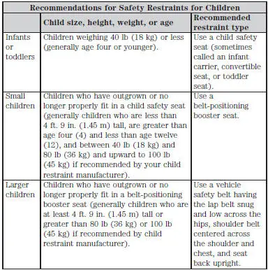 See the following sections for directions on how to properly use safety restraints for children.
