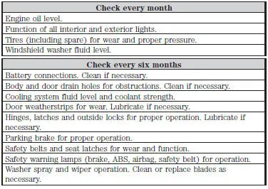 Certain basic maintenance checks and inspections should be performed every month or at six month intervals.