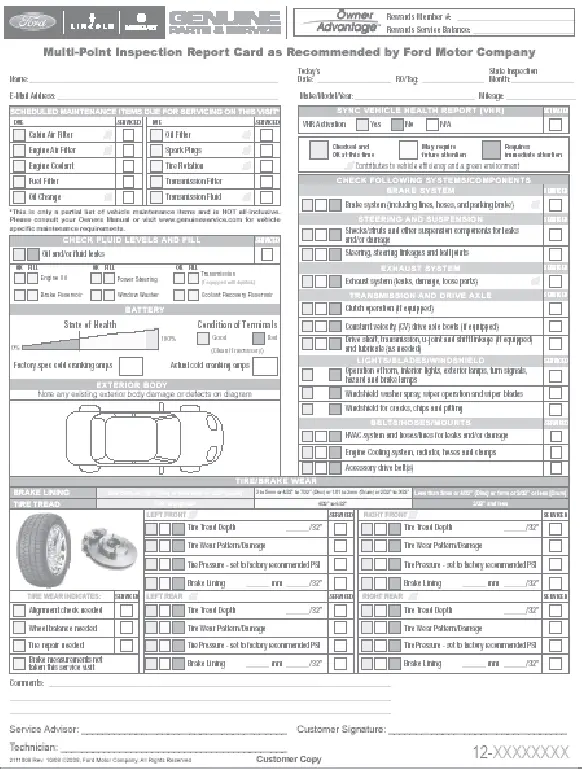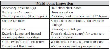 In order to keep your vehicle running right, it is important to have the systems on your vehicle checked regularly. This can help identify potential issues and prevent major problems. Ford Motor Company recommends the following multi-point inspection be performed at every scheduled maintenance interval to help make sure your vehicle keeps running great.