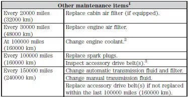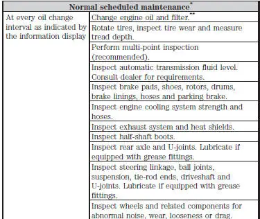Perform the services in the preceding table when specified or within 3000 miles (4800 kilometers) of the OIL CHANGE REQUIRED message appearing in the information display.