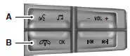 Press the seek buttons to select the next or previous stored preset or track. Press and hold to select the next or previous frequency or seek through a track.