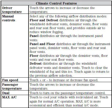 Ford Mustang (2005-2014) Owners Manual: Touchscreen climate controls